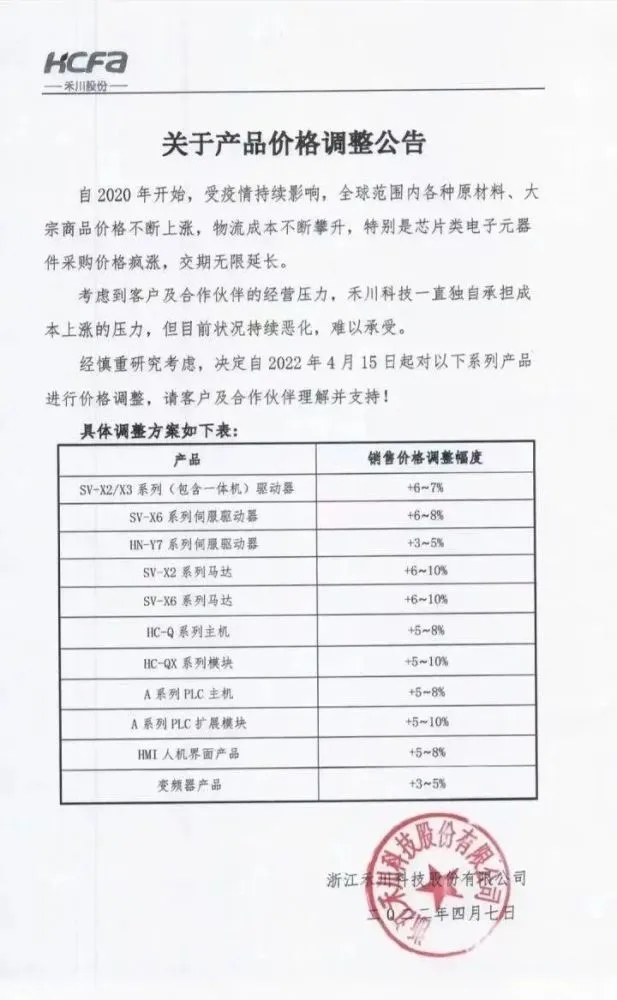 ABB、禾川、纳博特、来福谐波等厂商公开宣布涨价,而私下调整价格的无疑有更多。
