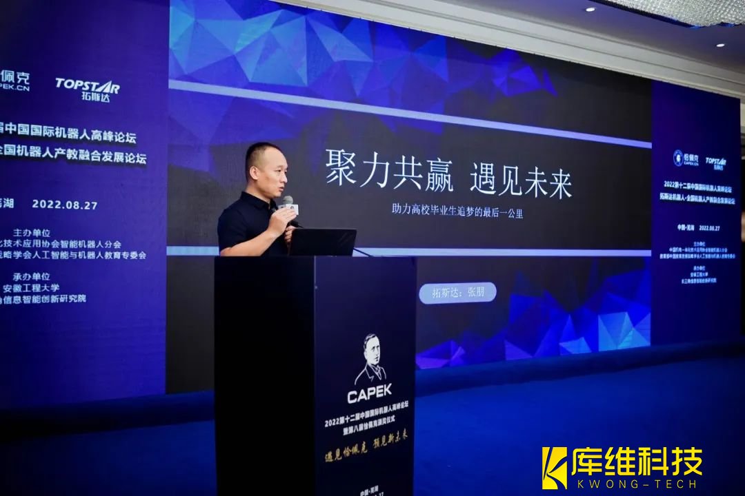 27日,在拓斯达冠名的恰佩克全国机器人产教融合发展论坛上,拓斯达董事、机器人事业部总经理张朋以“聚力共赢 预见未来——助力高校毕业生追梦的最后一公里”为题,与现场及线上的高校专家学者们共同探讨“如何培养更符合市场需求、更贴合实际的技术人才”,来解决当下“产品多,技术人员短缺”的行业痛点。