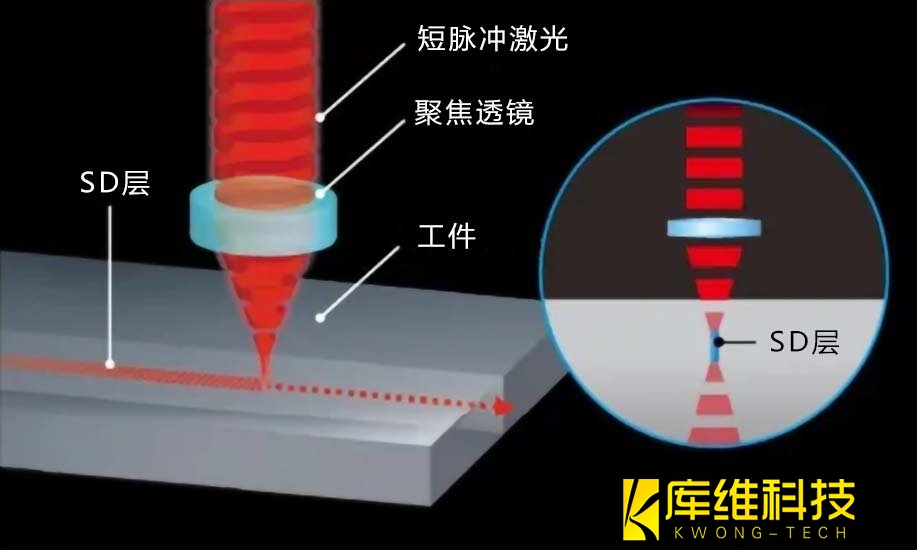 原理:通过精密激光束扫描形成改质层,使晶圆可通过外加应力沿激光路径拓展。