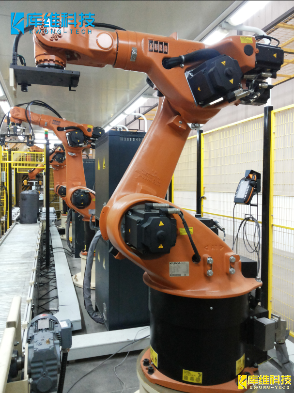 3、另一方面电缆线随机器人运动而不停摆动,电缆的损坏较快。因此,目前逐渐增多采用一体式焊钳。这种焊钳连同变压器质量在70kg左右。考虑到机器人要有足够的负载能力,能以较大的加速度将焊钳送到空间位置进行焊接,一般都选用100~150kg负载的重型机器人。为了适应连续点焊时焊钳短距离快速移位的要求,新的重型机器人增加了可在0。3s内完成50mm位移的功能,这对电机的性能,微机的运算速度和算法都提出更高的要求。
