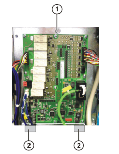 3. 取下固定板上的螺栓 (1),并将固定板连同 SIB 从连接板开口处拉出
