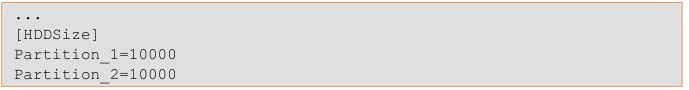 修复控制台可检索硬盘内存的总大小。 倘若其中一个分区已获得的分配值太小或者两个分区的分配总值大于硬盘内存总大小,系统将自动分配分区大小: