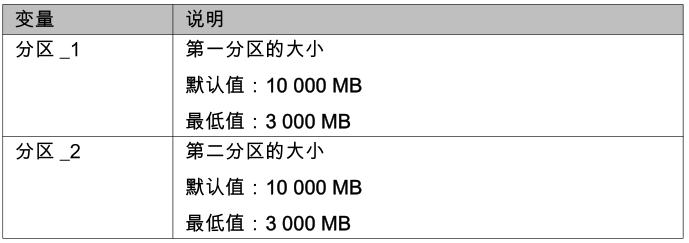 第一、第二分区的大小可通过库卡 USB 启动盘内的配置文件Mode\Controller.INI 来调整。 第一、第二分区的容量大小必须分别至少达到3000?MB,并且两者合计总量最大允许等于硬盘内存的总大小。