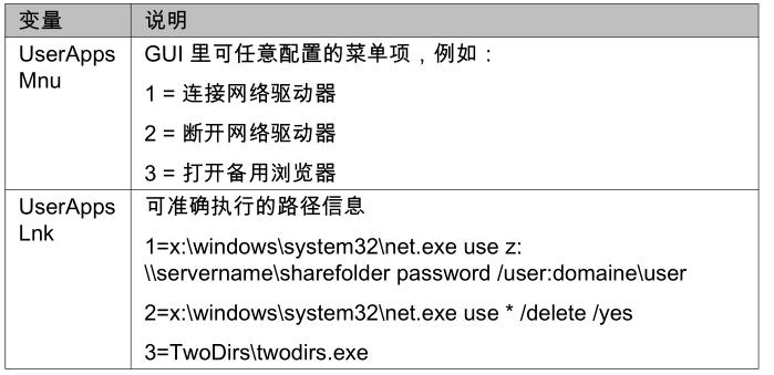 所有外部程序 (例如:TwoDirs)必须已存在于 U 盘里。