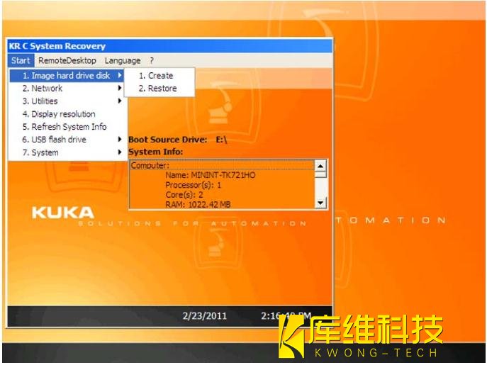 库卡机器人操作步骤 在该项操作方式里,需要使用一个外置监视器和显卡。