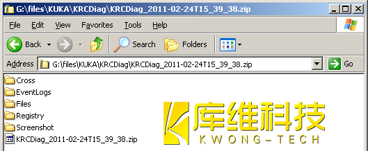 3. 文件: KRCDiag_[ 日期 ]T[ 钟面时间 ].zip 发送至库卡。